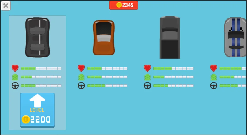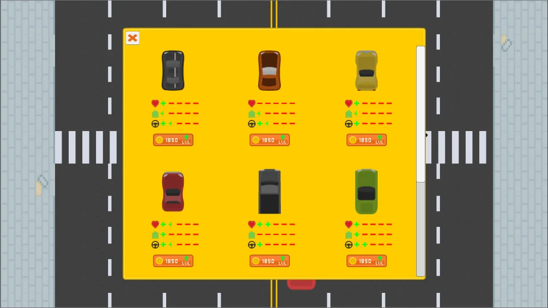 So, for this past week it has really just been more of the same. I've been working hard on a lot of behind the scenes mechanics with "The Garage"(Car purchasing, choosing and Leveling) as well as working on a lot of the UI layout, color schemes and info windows. Honestly, the UI piece is probably going to take a while to square away, as I was not prepared on how much design decision making would need to go into it. After soliciting some feedback from various social media, I've taken a lot of feedback and I'm trying to boil it all down to what looks and feels right for Dodgy Rush. We'll see what happens