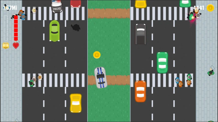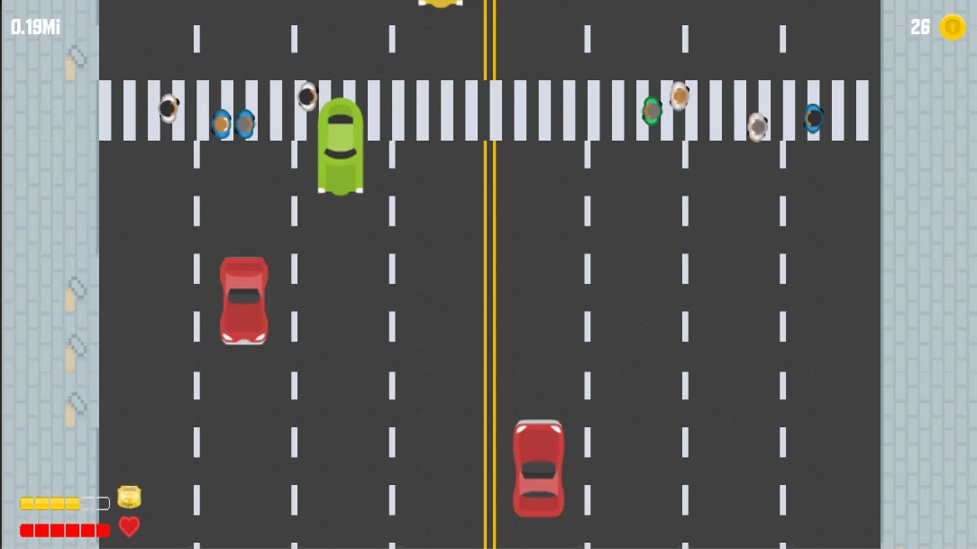 We were also able to accomplish a few smaller goals. A few new cars were added in, for variety as well as a lot of new walking people combinations. Outside of that, we were able to work in a bit of behind the scenes error handling and a few mechanic tweaks. All of this put together gives the game a much more fluid feel. Still a bit of work to iron out some mechanical issues that could be improved upon but, nothing too pressing that's glaring us in the face.