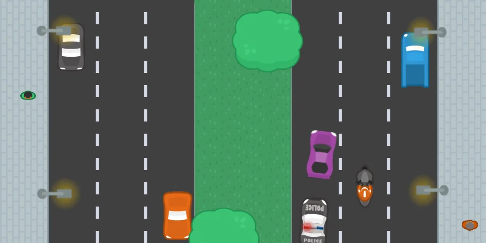 For our first game, I've decided to do something very simple. I wanted to make a game that was easy to explain, create and play. With that, I bring you Dodgy Rush (working title, maybe). A simple game about trying to drive through traffic, without hitting Pedestrians, other drivers or nabbed by the cops. Just a simple game, short, sweet, easy to play. I'll hopefully release it on all major mobile platforms so, we'll see how that works out. I plan on making it completely free, and really just want to release to go through the motions of the process. We'll make the dream game some other time.